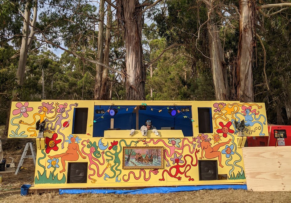 A stage mural and poster designs for a small New Year’s Eve festival.